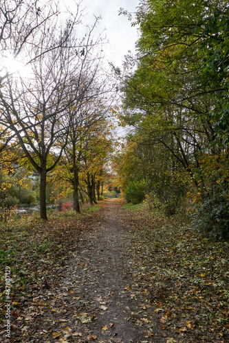 © creativcontent, Fototapeta premium beautiful path by the river with trees in autumn