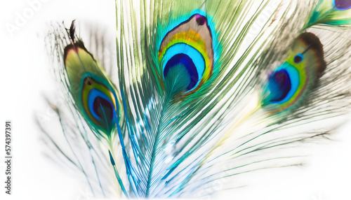 Obraz premium Beautiful Peacock Feather isolated on white background