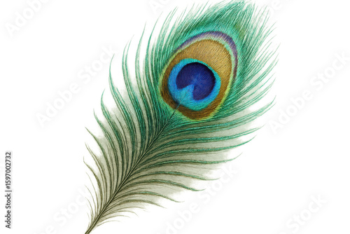 © Krtola , Fototapeta premium Beautiful peacock feather with transparent background, showcasing its vibrant colors and delicate structure