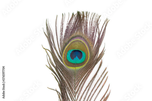 © pandaclub23, Obraz premium Beautiful peacock feathers on white background