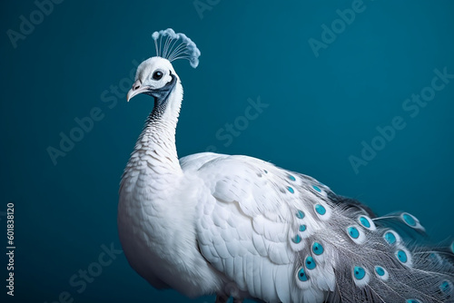 © Olga, Fototapeta premium Beautiful peacock isolated on blue background