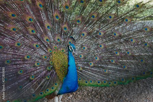 Obraz premium Beautiful peacock spread its tail in the zoo