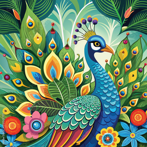 © Md. Nazmus Sakib, Obraz premium Beautiful Peacock Vector Illustration