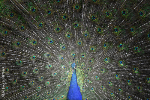 Obraz premium Beautiful peacock with feathers out.