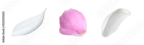 © New Africa, Fototapeta premium Beautiful peony petals on white background, set