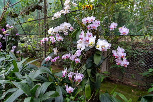 Fototapeta premium Beautiful Phalaenopsis Orchids Blooming in a Orchidorium 20 wide angle shot by Sony ALPHA ILCE-6400 under natural light conditions Exclusive on Adobe Stock