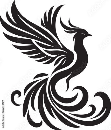 © Md Hasan, Obraz premium Beautiful Phoenix bird flying Silhouette vector illustration isolated on a white background