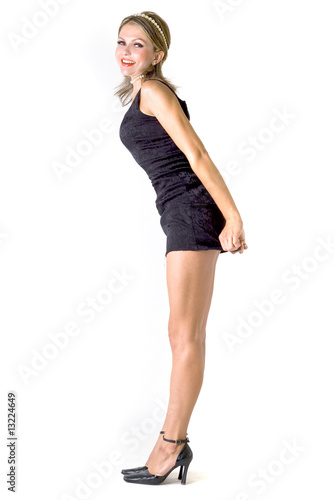 Fototapeta premium Beautiful pin-up pulling the skirt down