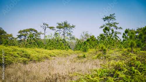 Obraz premium Beautiful pine forest and meadow in Phu Kradung, Thailand.