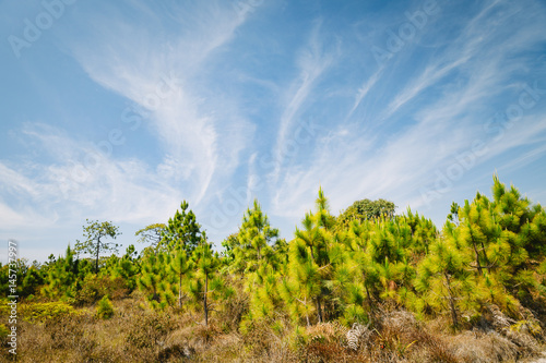 Obraz premium Beautiful pine forest and meadow in Phu Kradung, Thailand.