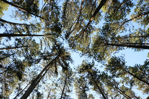 Fototapeta premium Beautiful Pine garden in forest and evergreen wooded pine tree forest in sunny day light