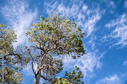 © jovannig, Obraz premium Beautiful pine tree against blue sky with clouds