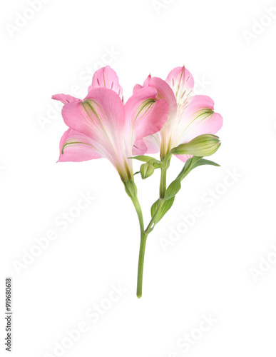 © New Africa, Fototapeta premium Beautiful pink alstroemeria flowers isolated on white