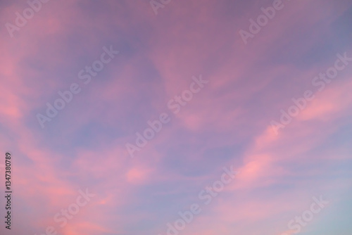 Fototapeta premium Beautiful Pink and Blue Sunset Sky with Soft Clouds