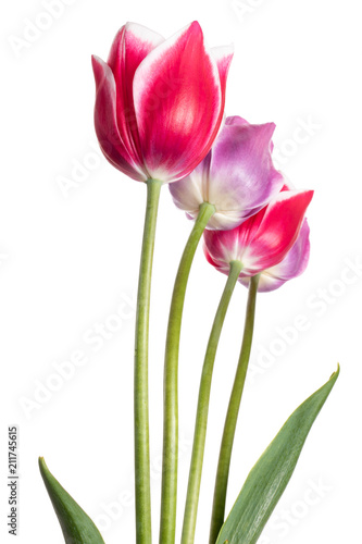 © Yury Kisialiou, Fototapeta premium Beautiful pink and lilac tulip flower isolated on a white background