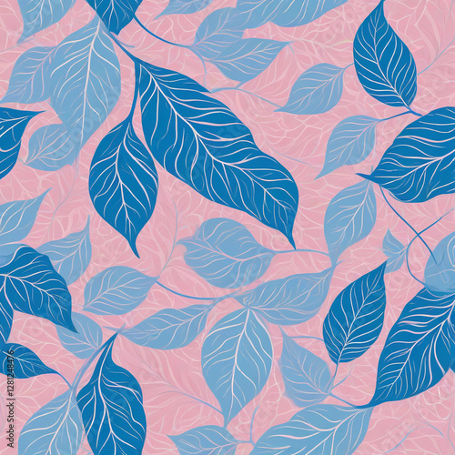 Fototapeta premium Beautiful pink background with blue leaf patterns, perfect for floral, elegant, and modern wallpaper or textile design inspiration