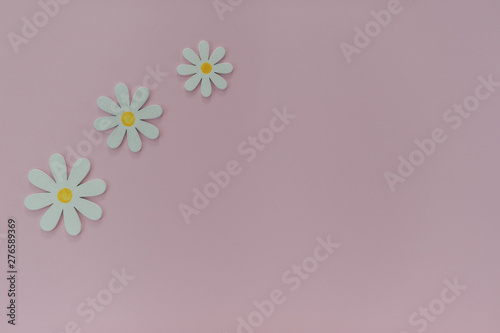 Naklejka premium Beautiful pink background with daisies. Texture for creative ideas. The concept of lightness and minimalism in design