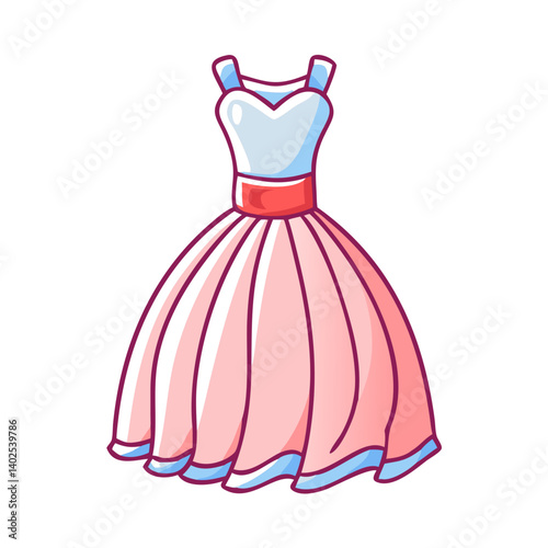 Obraz premium Beautiful Pink Ball Gown Wedding Dress with Red Belt and Light Blue Trim