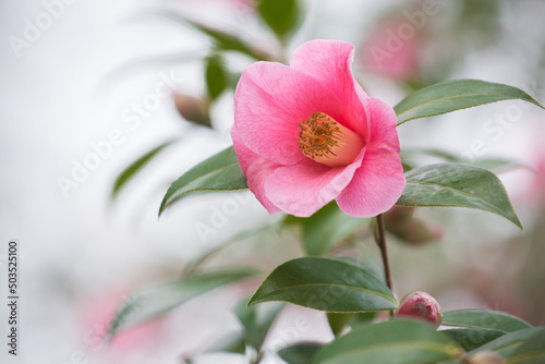 © Claudia, Obraz premium Beautiful pink camellia blossom against a soft, dreamy background in spring