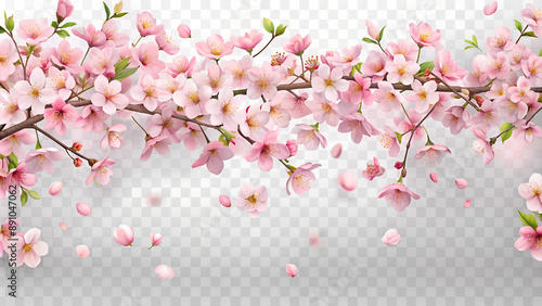 © Ragnar, Fototapeta premium Beautiful pink cherry blossom branch with falling petals on transparent background