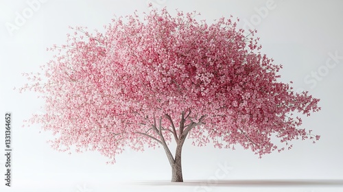 © Nasira, Fototapeta premium Beautiful Pink Cherry Blossom Tree Against a Light Background