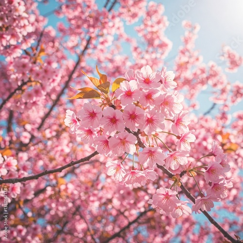 © ticiane, Fototapeta premium Beautiful pink cherry blossoms in full bloom