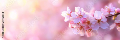Fototapeta premium Beautiful pink cherry blossoms in soft spring light, evoking joy and tranquility