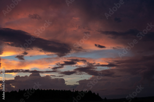 © sandipruel, Fototapeta premium Beautiful pink clouds at sunset.