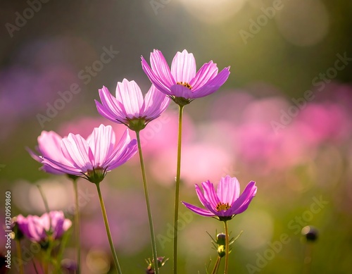 © Bismillah, Fototapeta premium Beautiful Pink Cosmos Flowers in Sunlight.