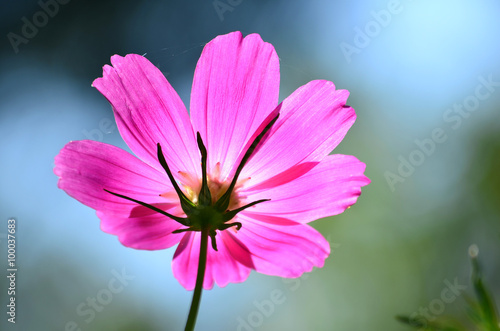 © boryanam, Obraz premium beautiful pink cosmos flowers on a sky background - close up