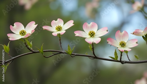 Obraz premium Beautiful pink dogwood flowers blooming on tree branch in spring
