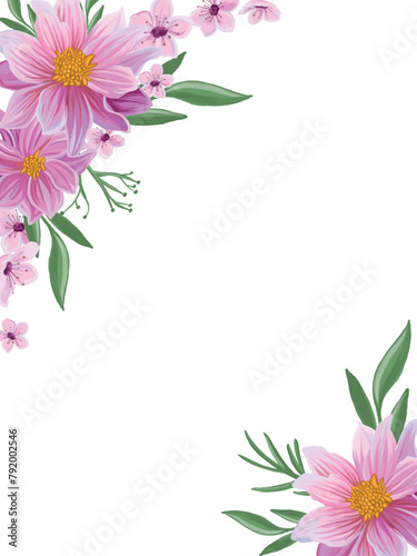 © Iuliana, Naklejka premium Beautiful pink flowers and leaves floral background
