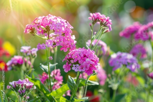 Fototapeta premium Beautiful Pink Flowers Blooming in Sunlight
