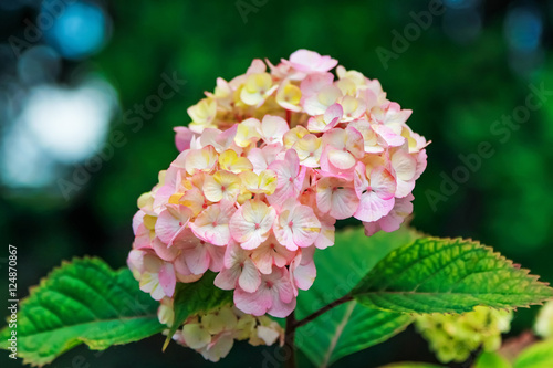 Fototapeta premium Beautiful pink hydrangea flower in a garden