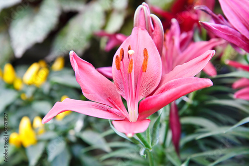 Fototapeta premium Beautiful pink lily close up .