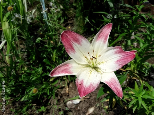 Fototapeta premium Beautiful pink lily flower in summer in Russia