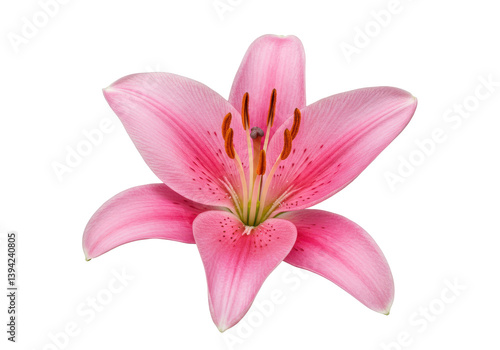 © Elsha, Naklejka premium Beautiful pink lily flower isolated on white background showcasing delicate petals