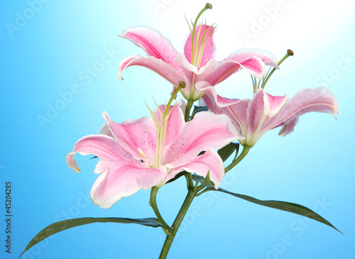 © Africa Studio, Fototapeta premium beautiful pink lily, on blue background