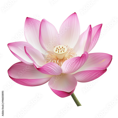 © QuixaLab, Naklejka premium Beautiful pink lotus blossom in serene environment. PNG image, transparent background