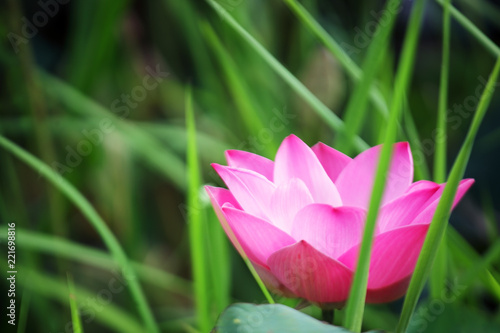 Obraz premium beautiful pink lotus flower blooming in pond.
