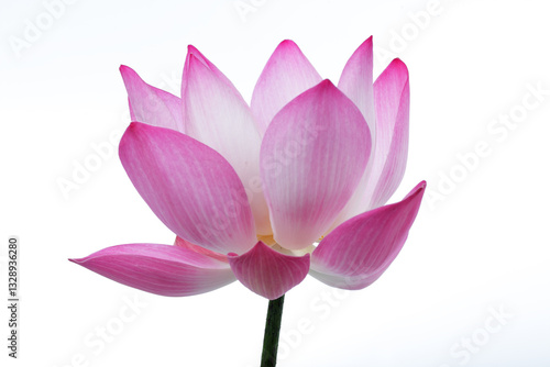 © sakhorn38, Fototapeta premium Beautiful Pink Lotus Flower with Delicate Petals Against White Background