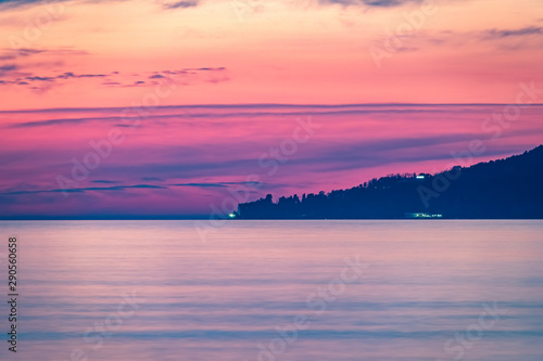 © Dmitrii Potashkin, Fototapeta premium Beautiful pink sunset over the sea.