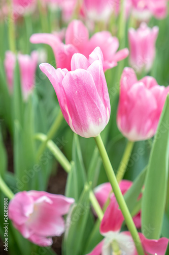 Fototapeta premium Beautiful pink tulip flower in the garden.