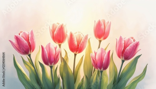 Fototapeta premium Beautiful pink tulips in a serene mood glowing in soft sunlight