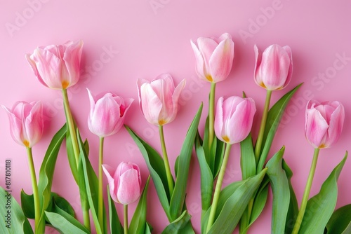 Fototapeta premium Beautiful pink tulips on a soft pink background. Perfect for spring and...