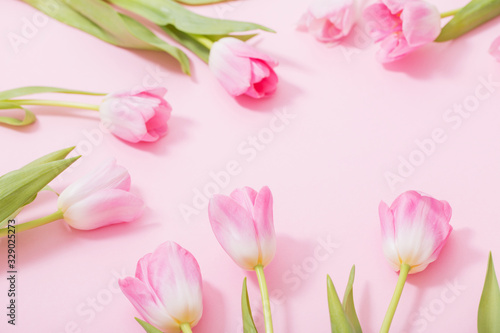 © Siarhei, Fototapeta premium beautiful pink tulips on pink background