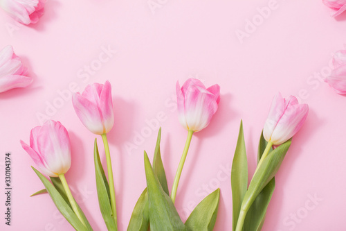© Siarhei, Fototapeta premium beautiful pink tulips on pink background