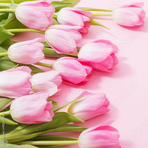 © Siarhei, Fototapeta premium beautiful pink tulips on pink background