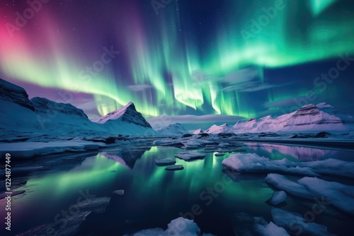 Naklejka premium beautiful polar lights in mountain winter landscape