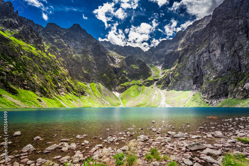 © shaiith, Fototapeta premium Beautiful pond in the middle of the mountains at dawn